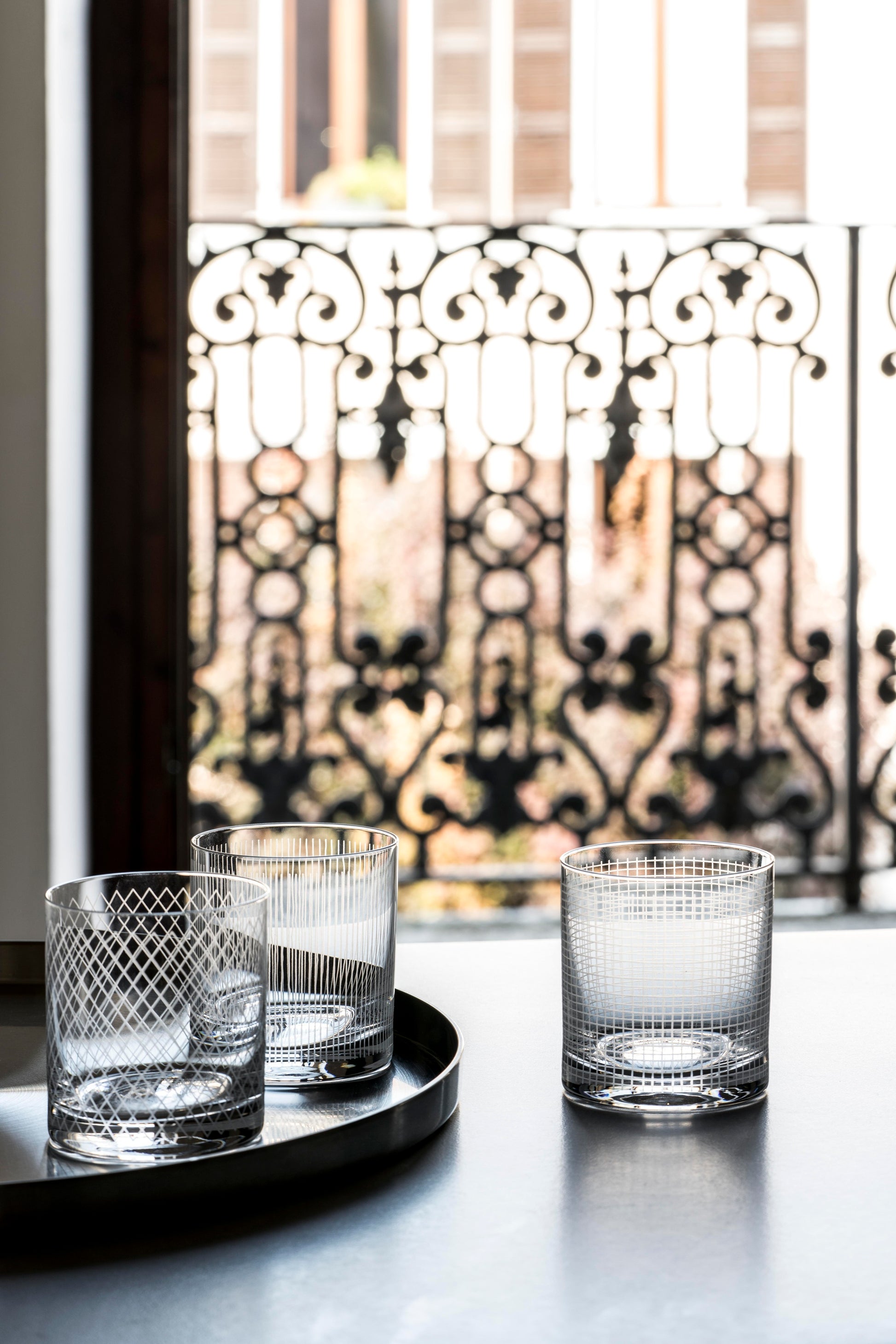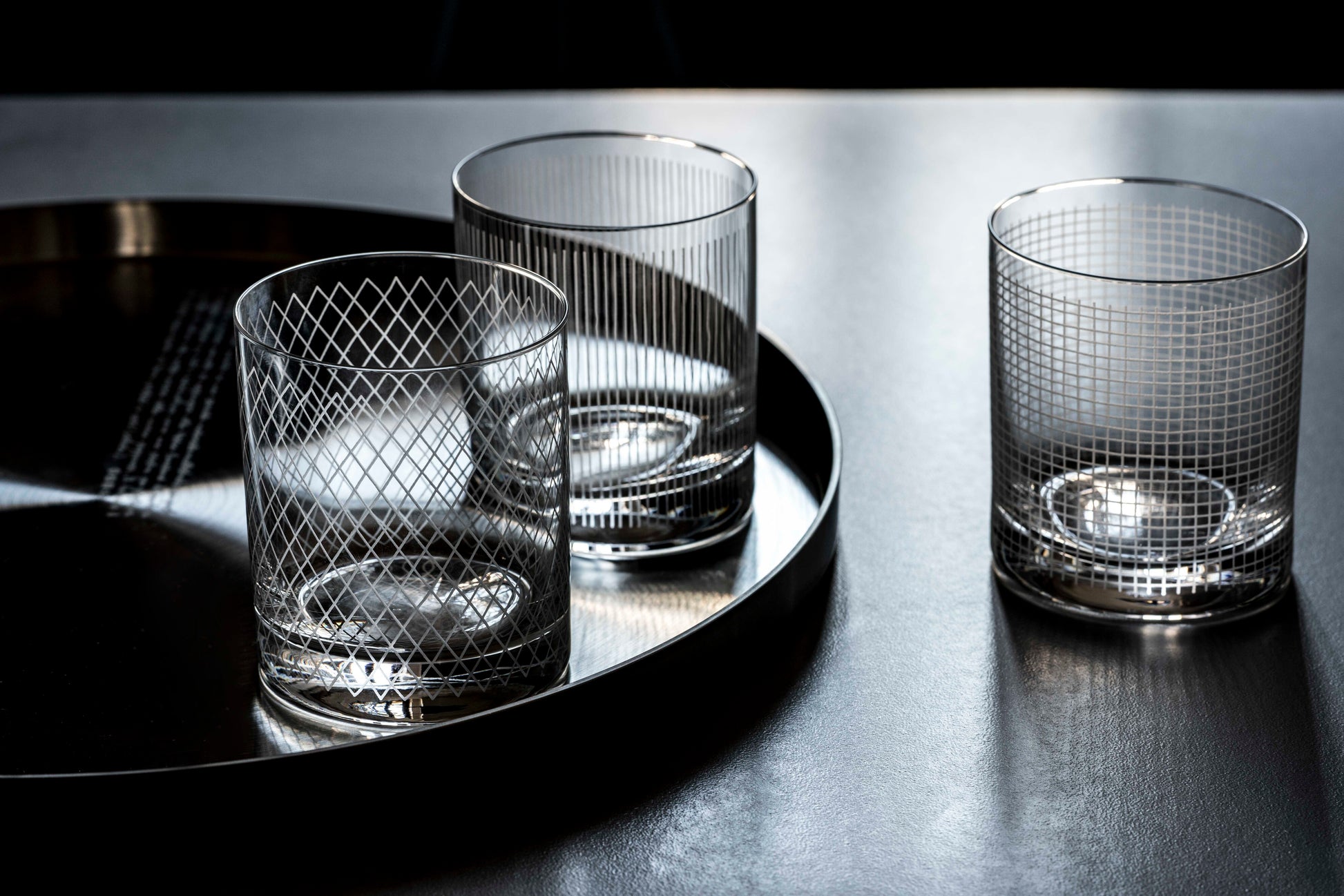 The textures created for the Paesaggi collection in Fine Bone China are repeated on the glasses, giving life to innovative and creative combinations.