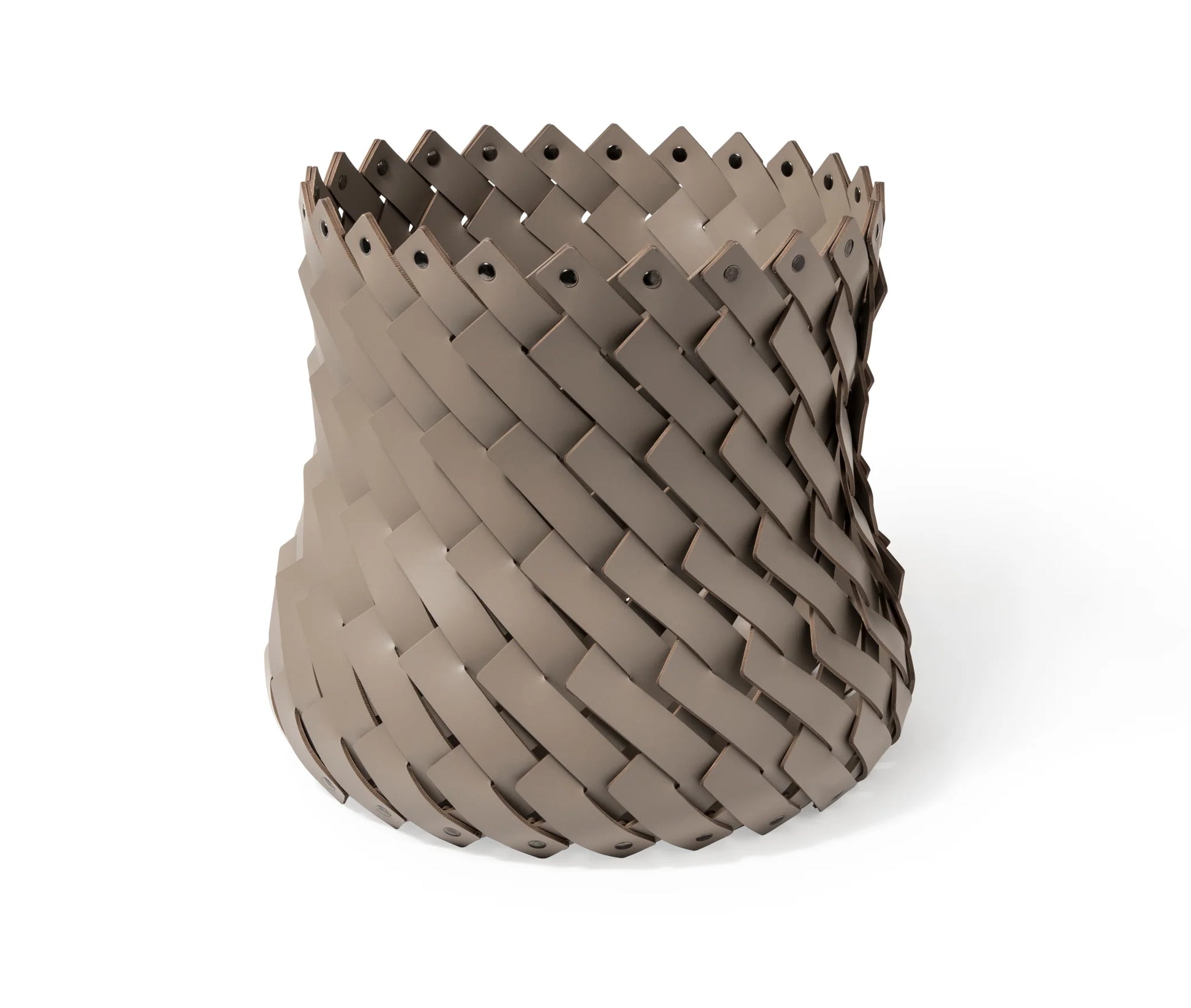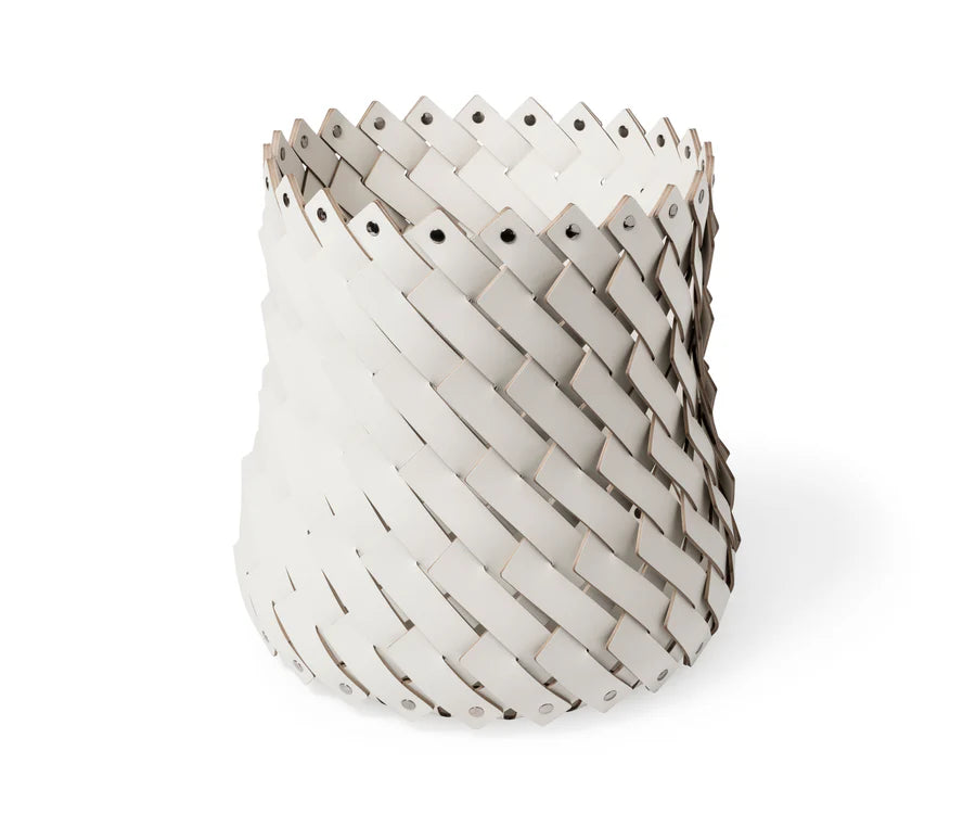 Un cestino che all'occorrenza può trasformarsi in un portariviste, una coperta, un portascarpe o un semplice elemento d'arredo.