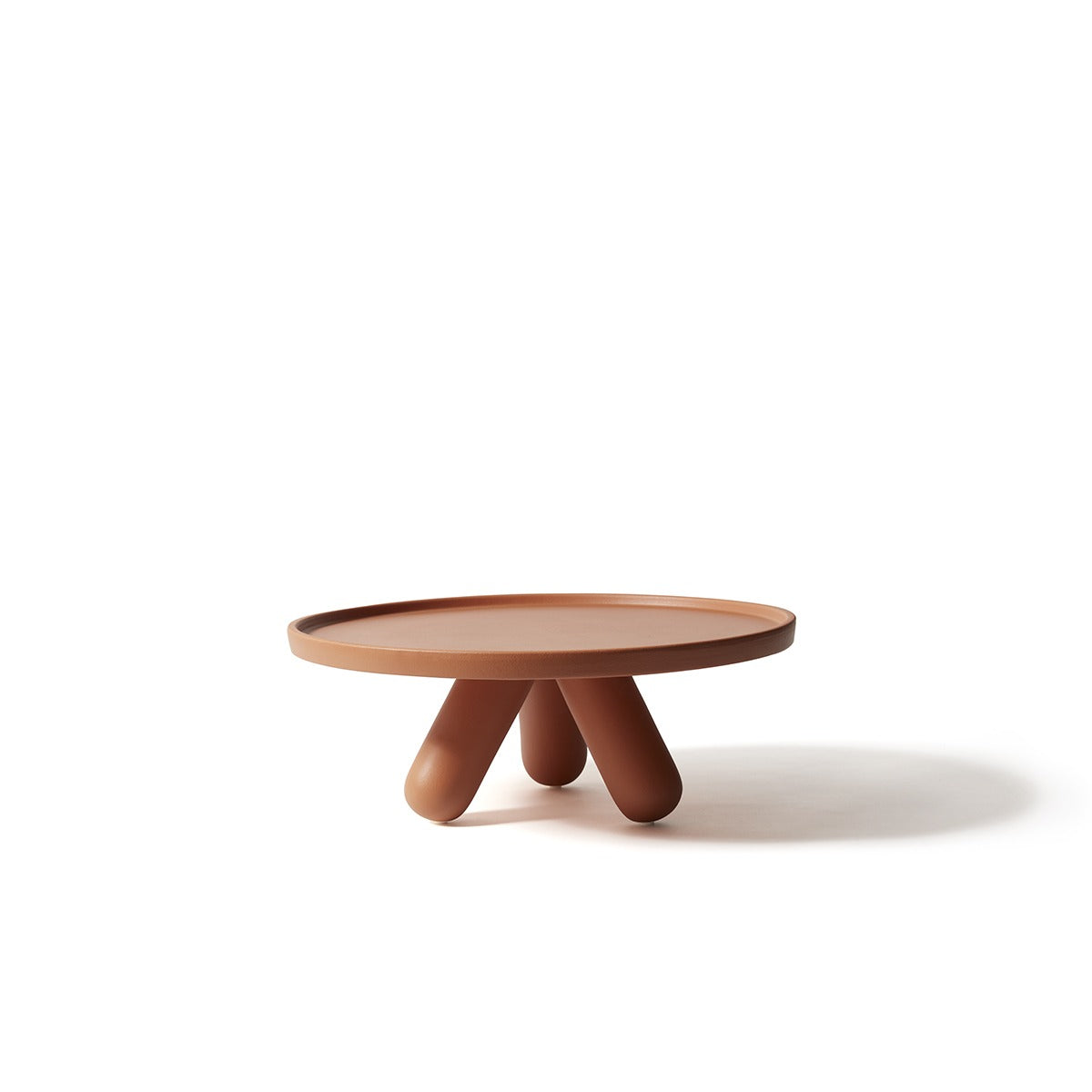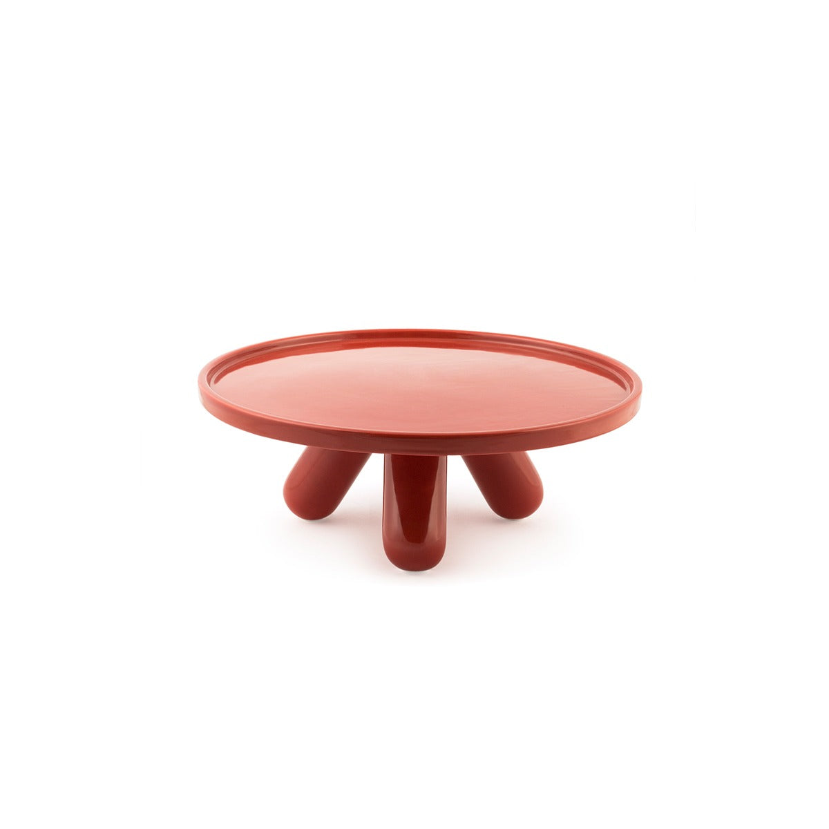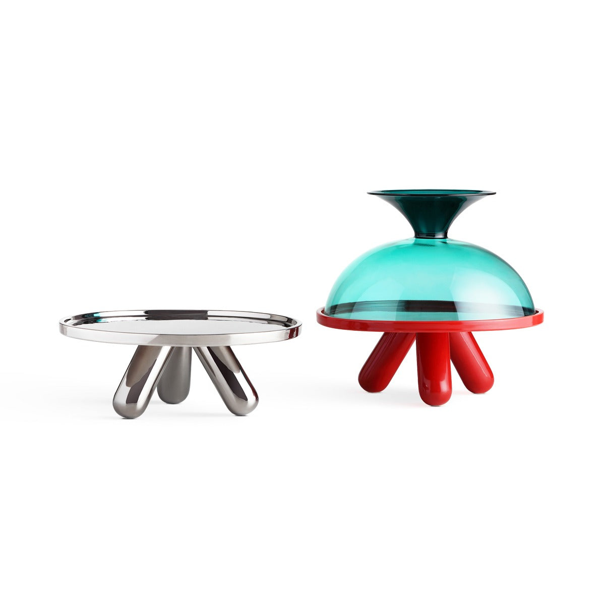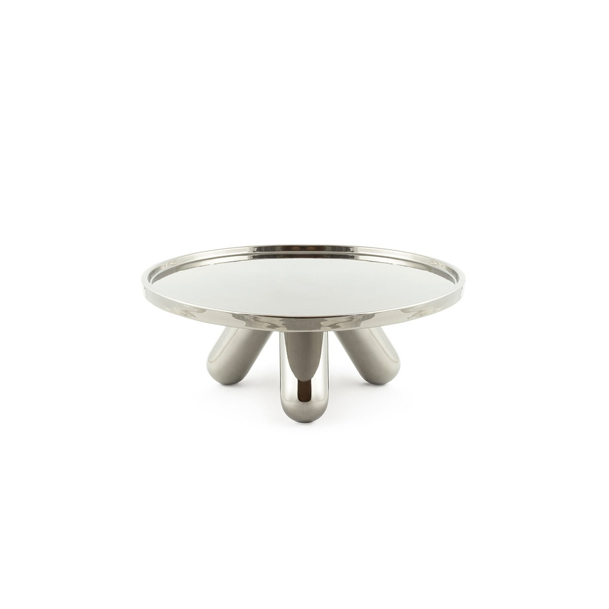 Grande alzata rotonda disponibile in due versioni: ceramica colorata e ceramica platinata.