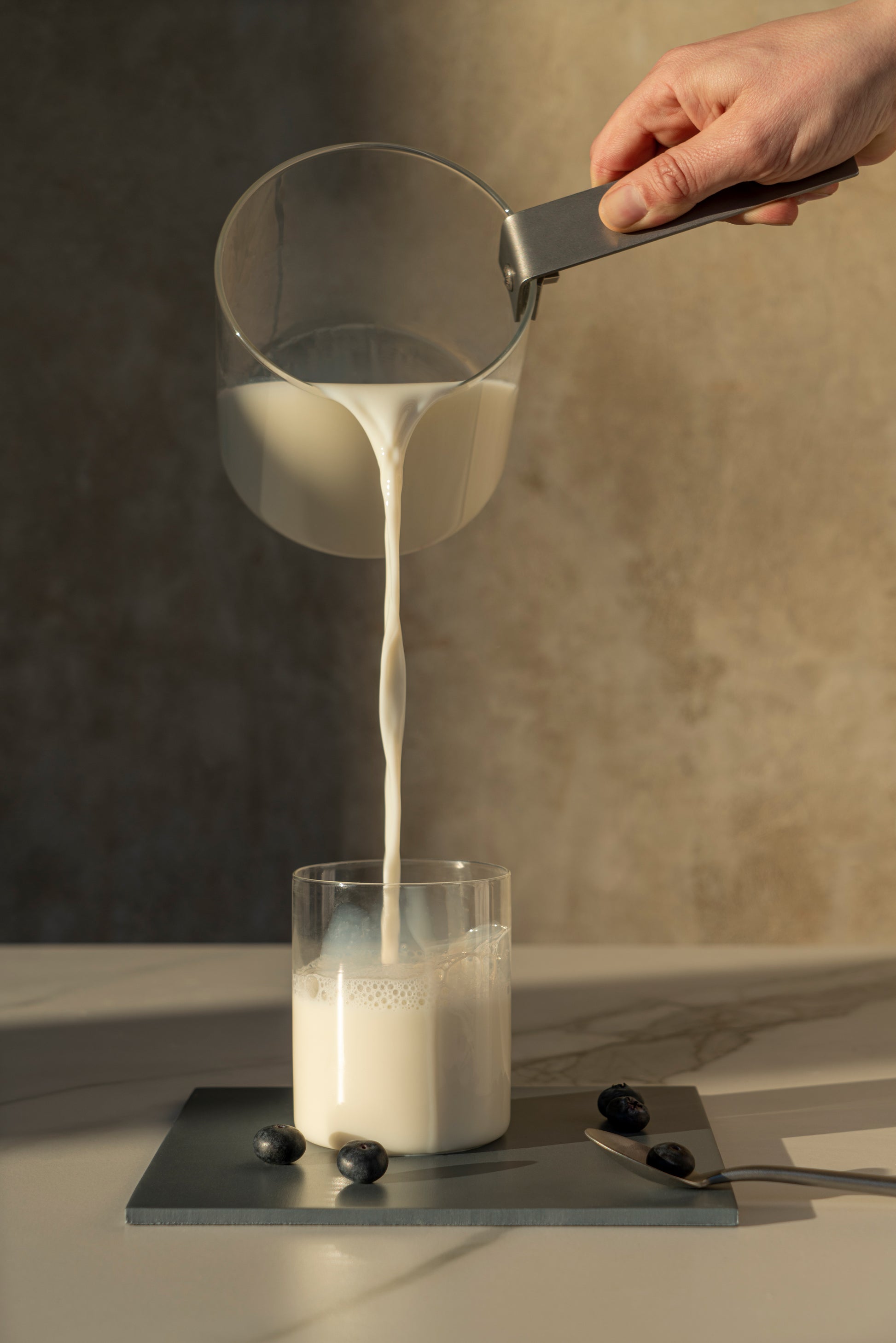 Il bollilatte trasparente The Kettle, disegnato da Lara Caffi, è un oggetto dallo stile inconfondibile da utilizzare anche come lattiera per il servizio in tavola.