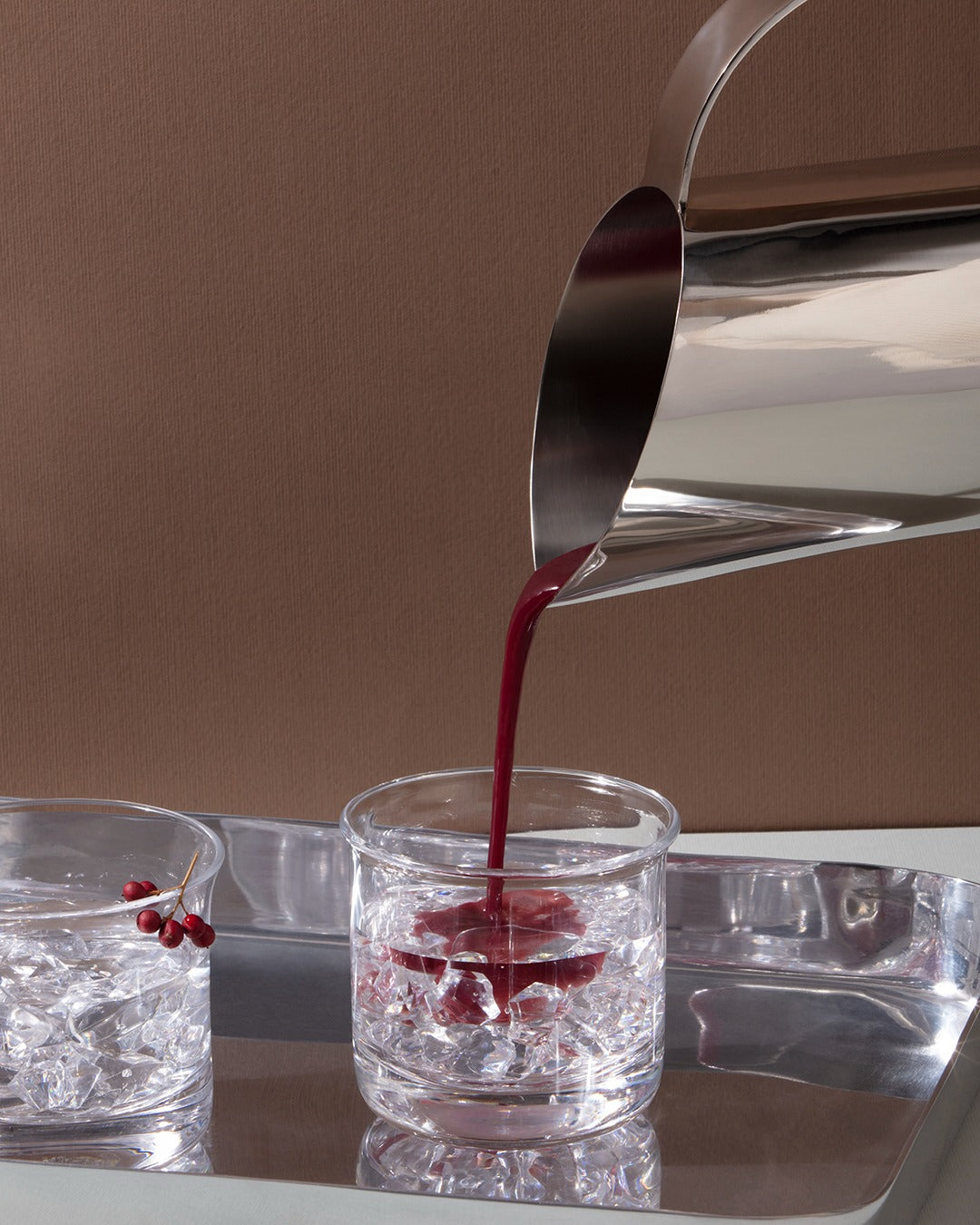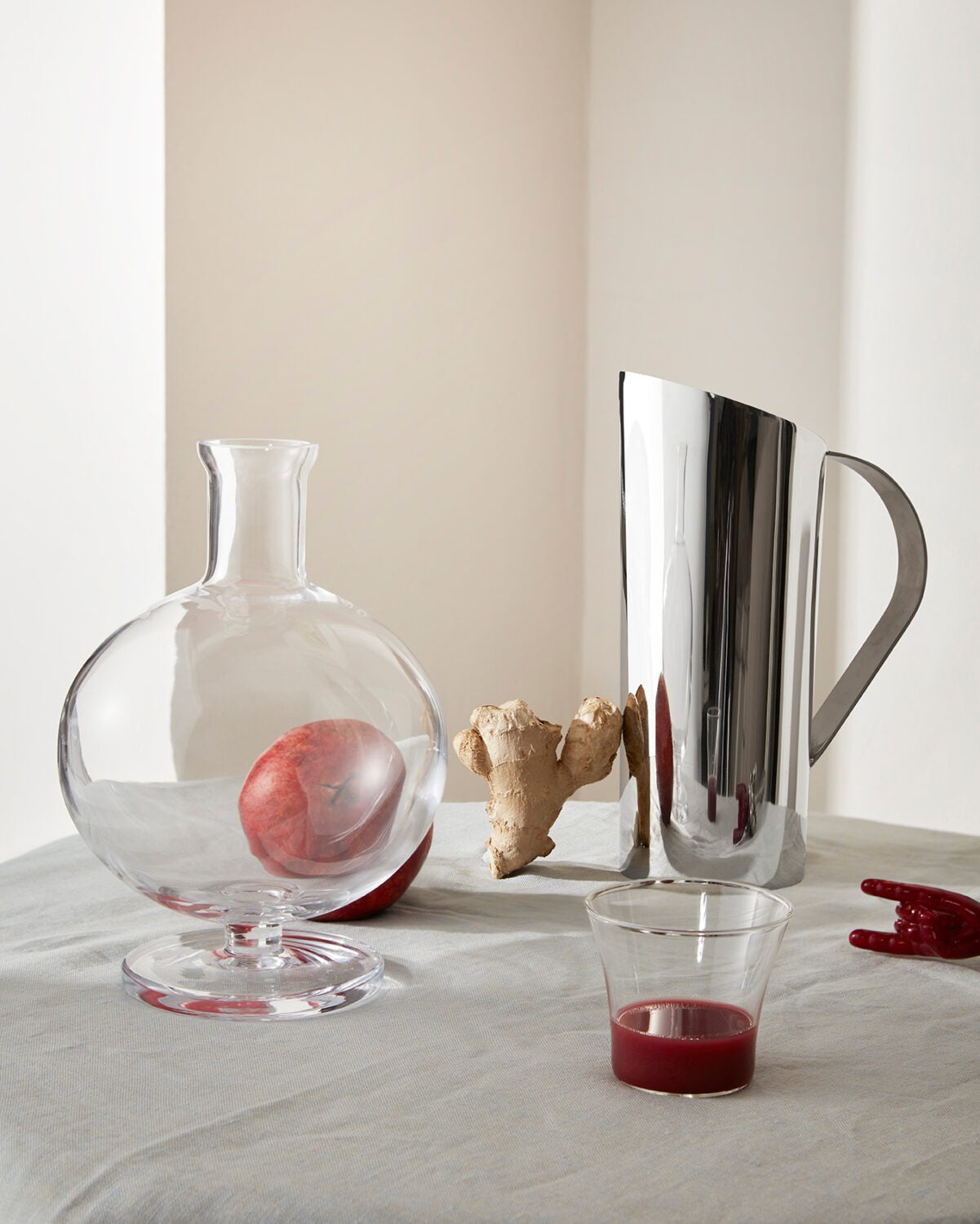 Caraffa con manico disponibile in 2 versioni: silver-plated e acciaio inox.