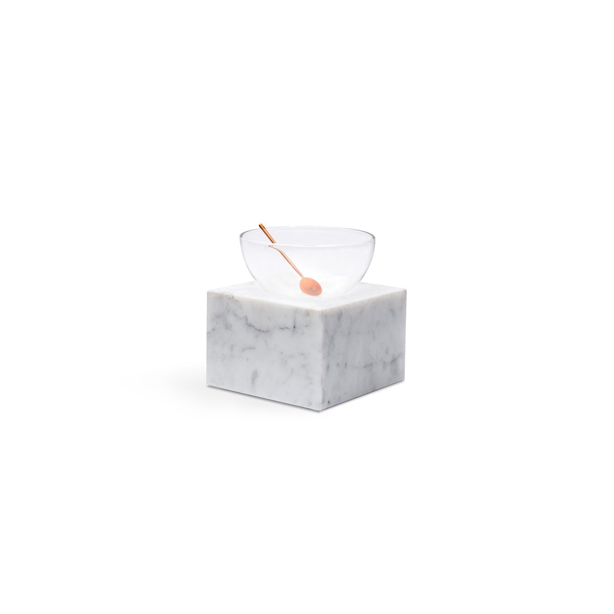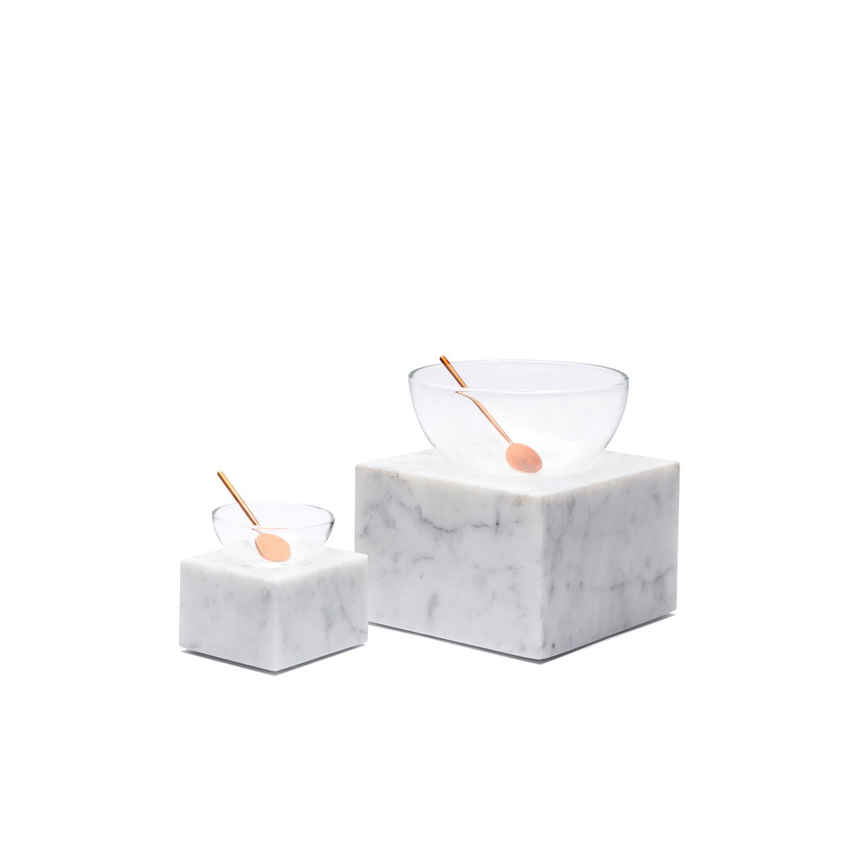 Ciotola in vetro borosilicato trasparente soffiato a bocca.