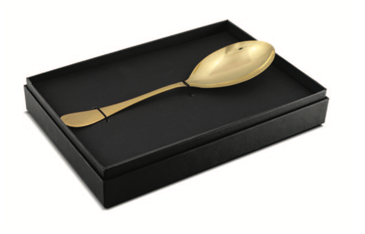 Il cucchiaio risotto Oro è il regalo perfetto per chi desidera unire praticità e stile in cucina. Con un manico elegante e affusolato, questo cucchiaio offre una presa salda e piacevole durante l’uso. La finitura oro Ice lo rende un pezzo di grande fascino, capace di aggiungere una nota di lusso discreto al servizio da tavola. Un dono prezioso e raffinato, pensato per chi ama i dettagli curati e un design sofisticato.