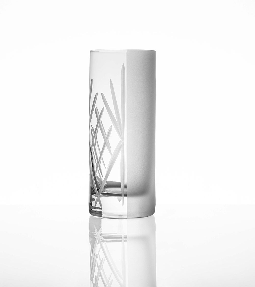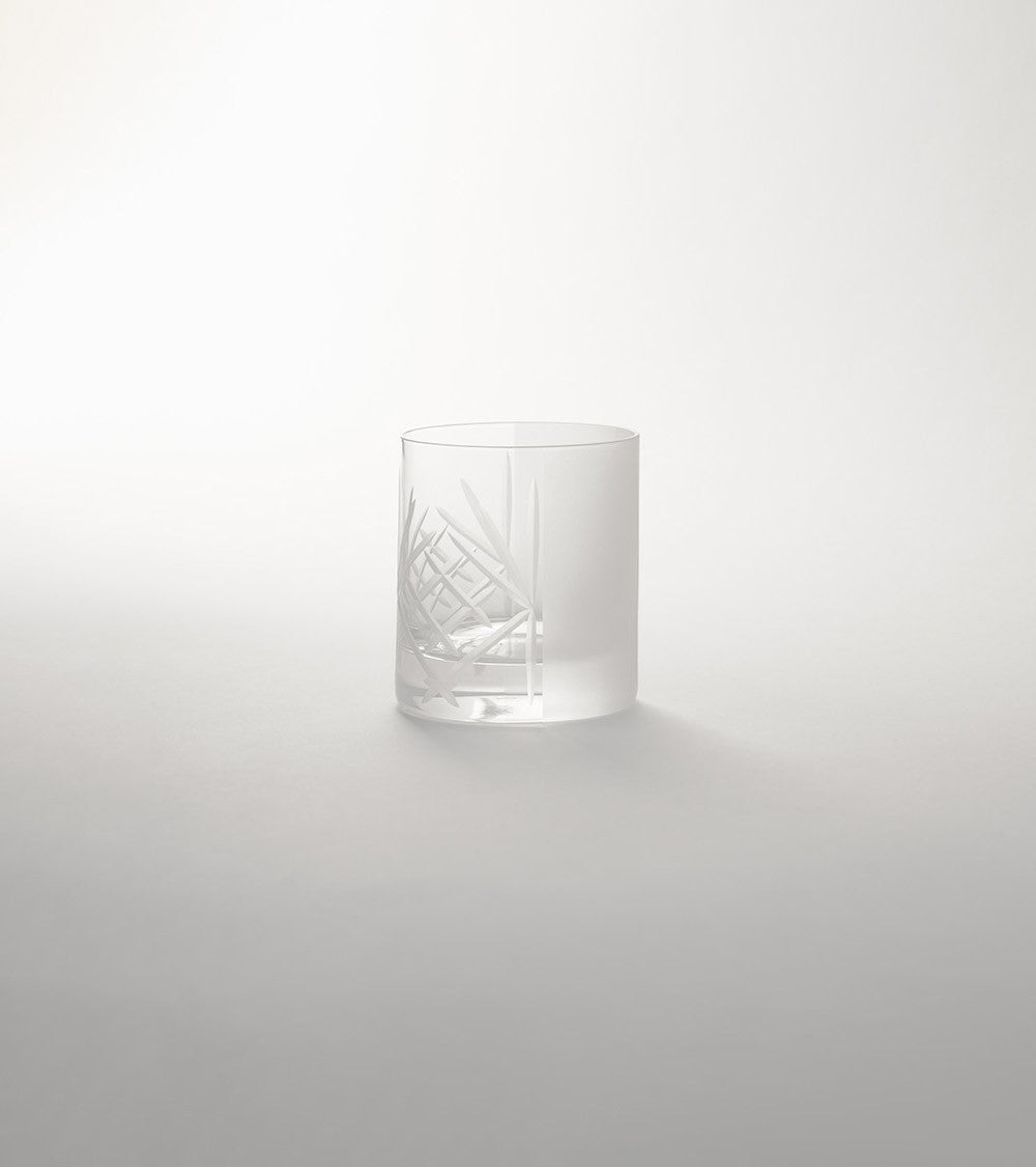 La nuova collezione di bicchieri In/Tagli, disegnata da Lara Caffi, rivela la preziosa lavorazione del vetro, per un effetto di grande eleganza. I Tumbler sono caratterizzati da tre decorazioni diverse del vetro, eseguite con la tecnica della molatura. Sofisticata la doppia finitura: metà bicchiere è decorato con una texture satinata, l’altra metà con un elegante intaglio o nella versione trasparente