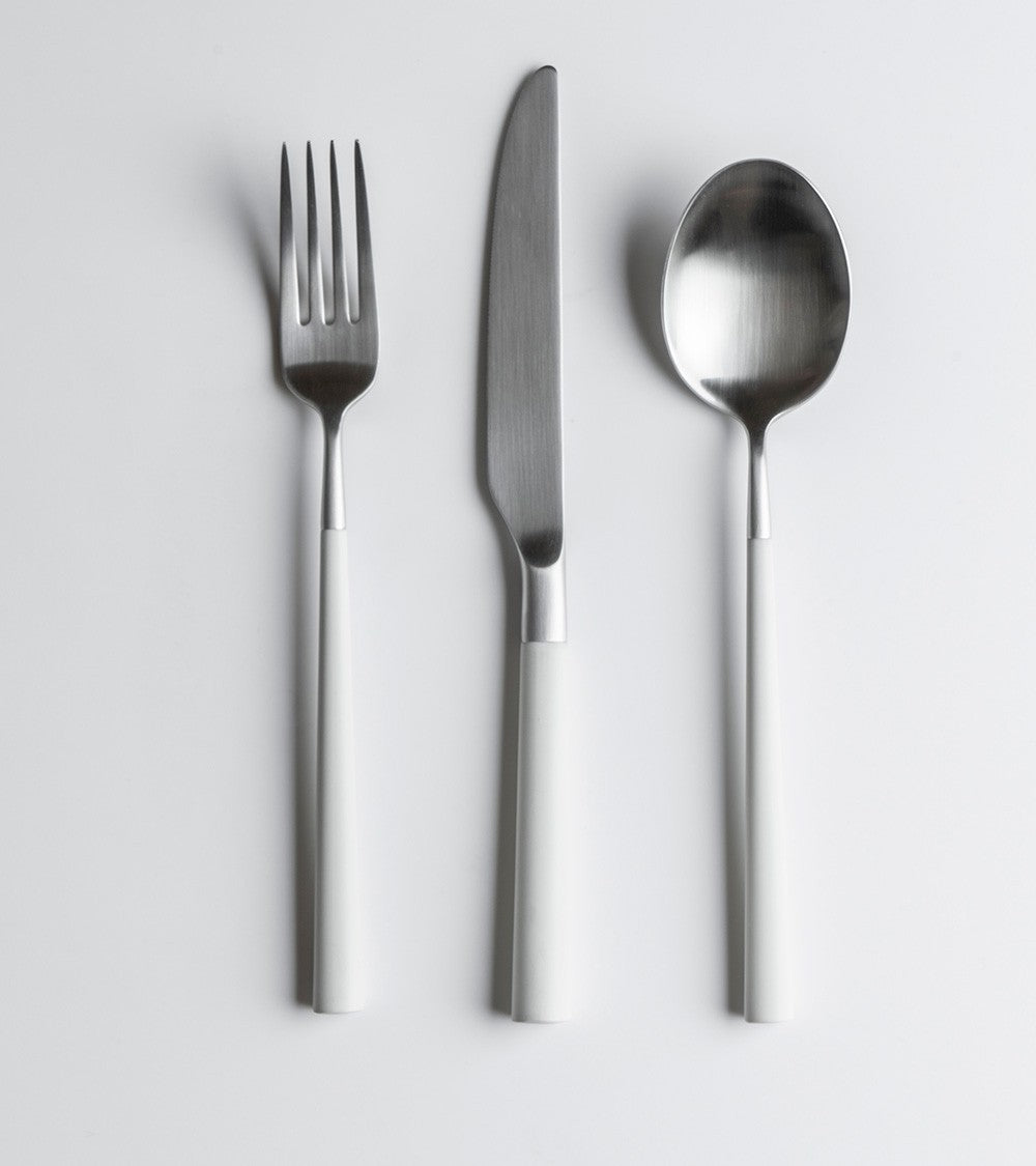 Linea di posate in acciaio con finiture in plastica della collezione SchönhuberFranchi.