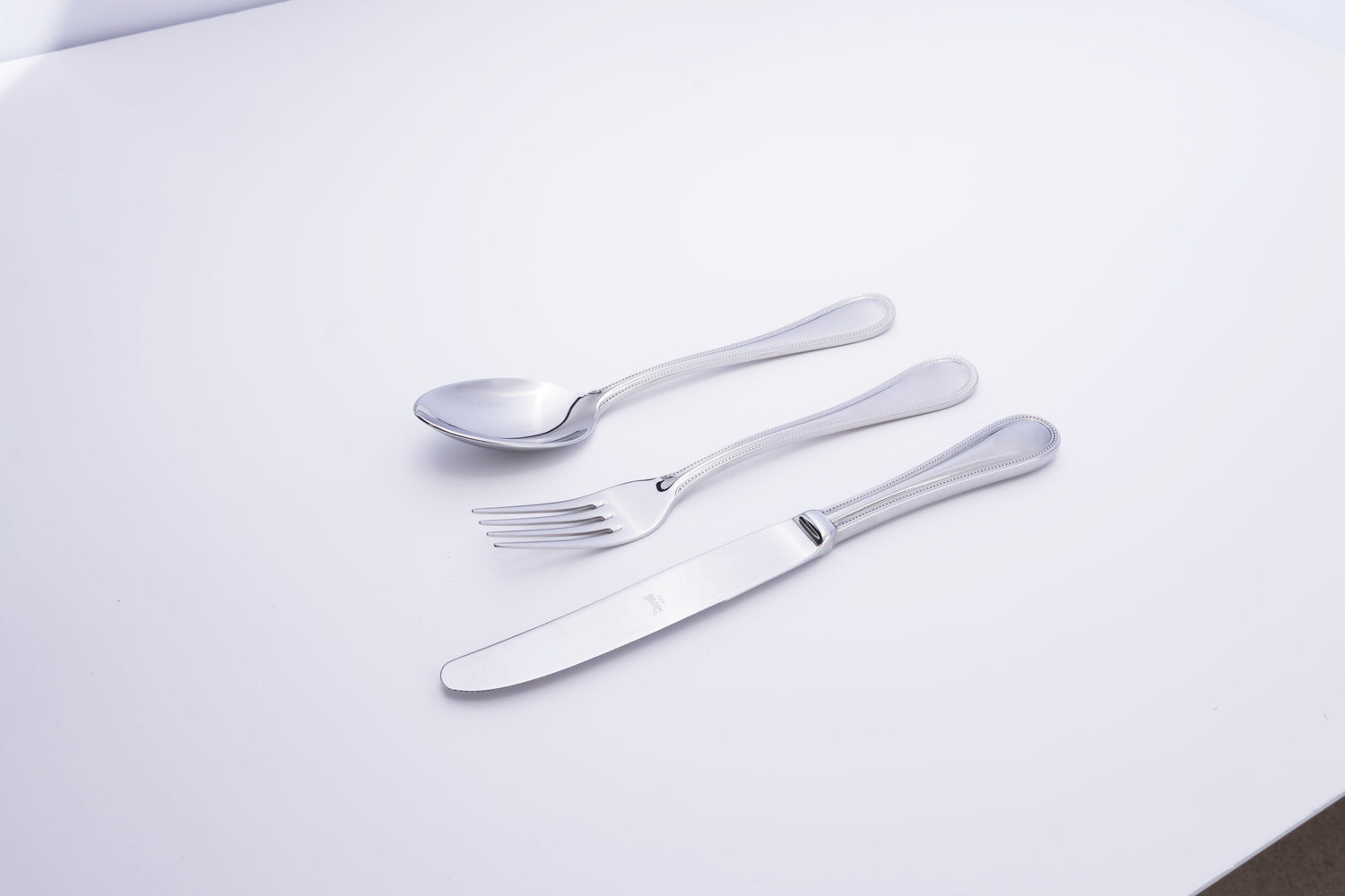 Il set di posate Perla è caratterizzato dai suoi manici lavorati con maestria, decorati da piccoli e delicati dettagli ispirati alla bellezza delle perle. Ogni posata di questo set è simbolo di artigianalità e qualità che caratterizza ed evoca l'essenza delle perle con un design raffinato che conferisce un'atmosfera di eleganza e lusso ad ogni momento a tavola.