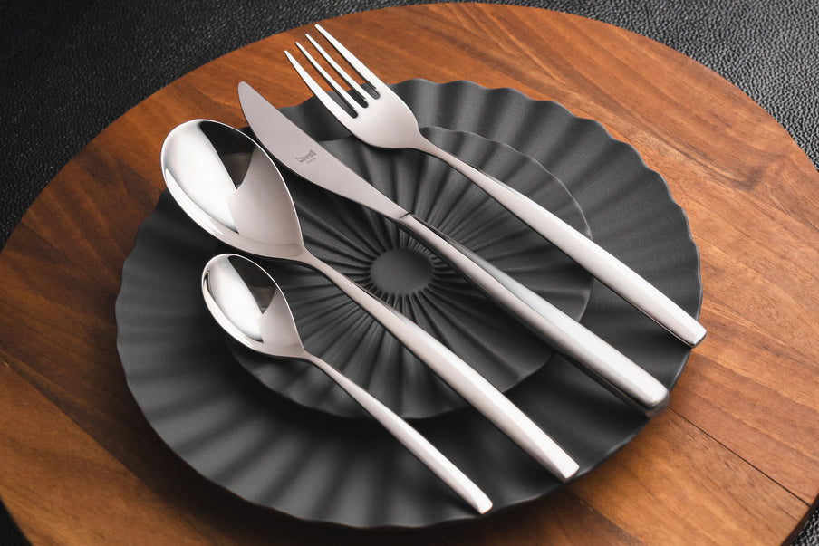 La collezione Stiria si distingue per la sua eleganza essenziale e il profilo slanciato che interpreta con raffinatezza lo stile contemporaneo. Realizzata in acciaio inossidabile 18/10, questa linea di posate unisce funzionalità e design in un equilibrio perfetto. Le linee nette e definite donano agli elementi della collezione un aspetto moderno e sofisticato, pensato per ambienti dal gusto attuale e ricercato. Ideale per valorizzare ogni mise en place, Stiria rappresenta una scelta di carattere per chi apprezza una posata elegante e senza tempo.
