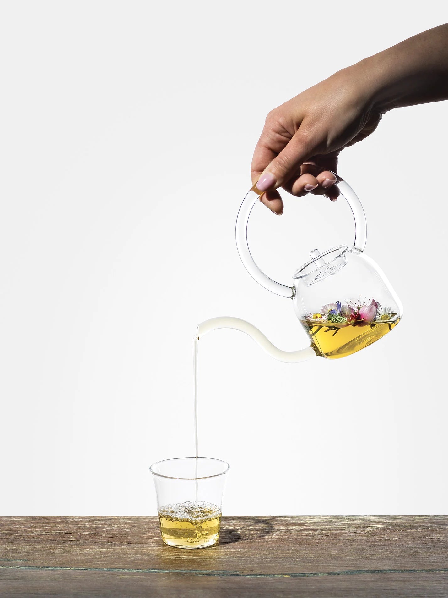 Philomena non è solo una raffinata salsiera in vetro borosilicato per brodetti e salse a bassa densità da aggiungere a completamento di ricercati piatti gourmet, ma è anche una teiera individuale per gustare un tè o una tisana.