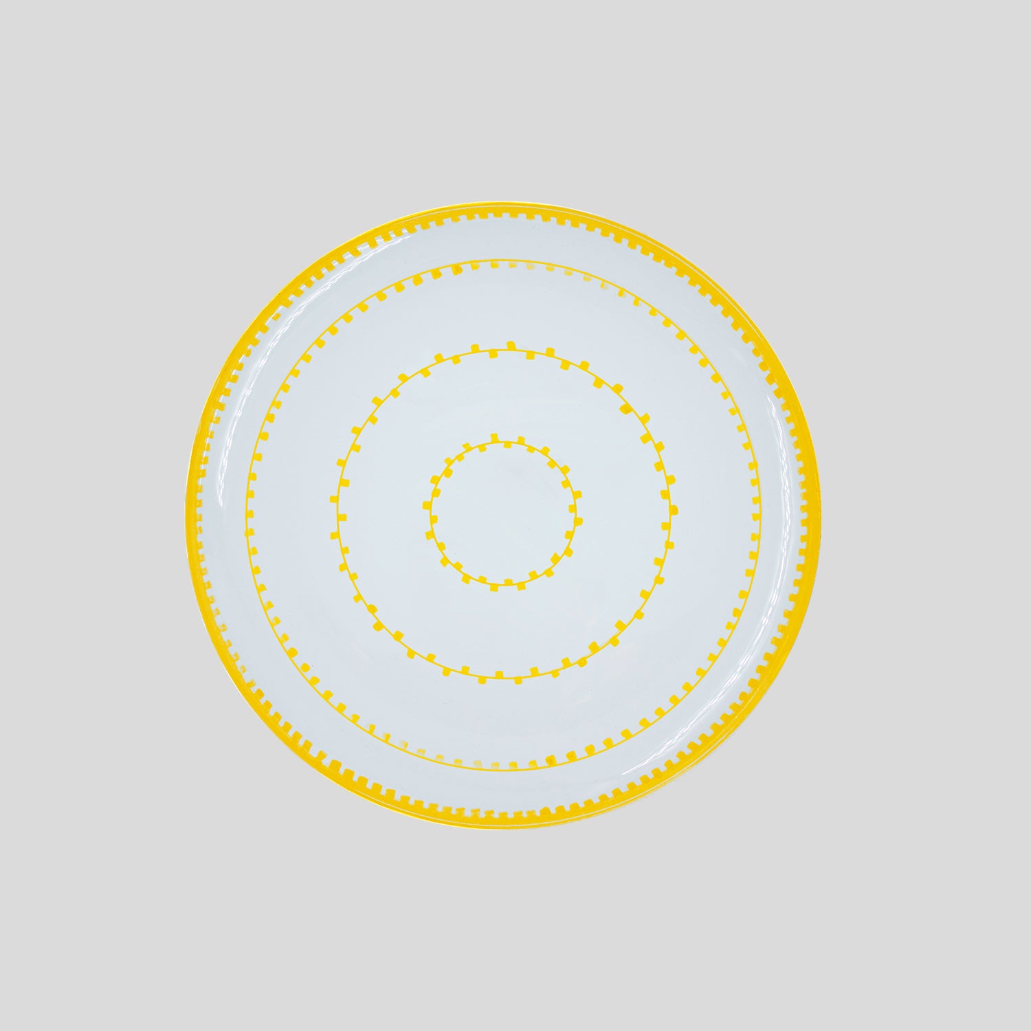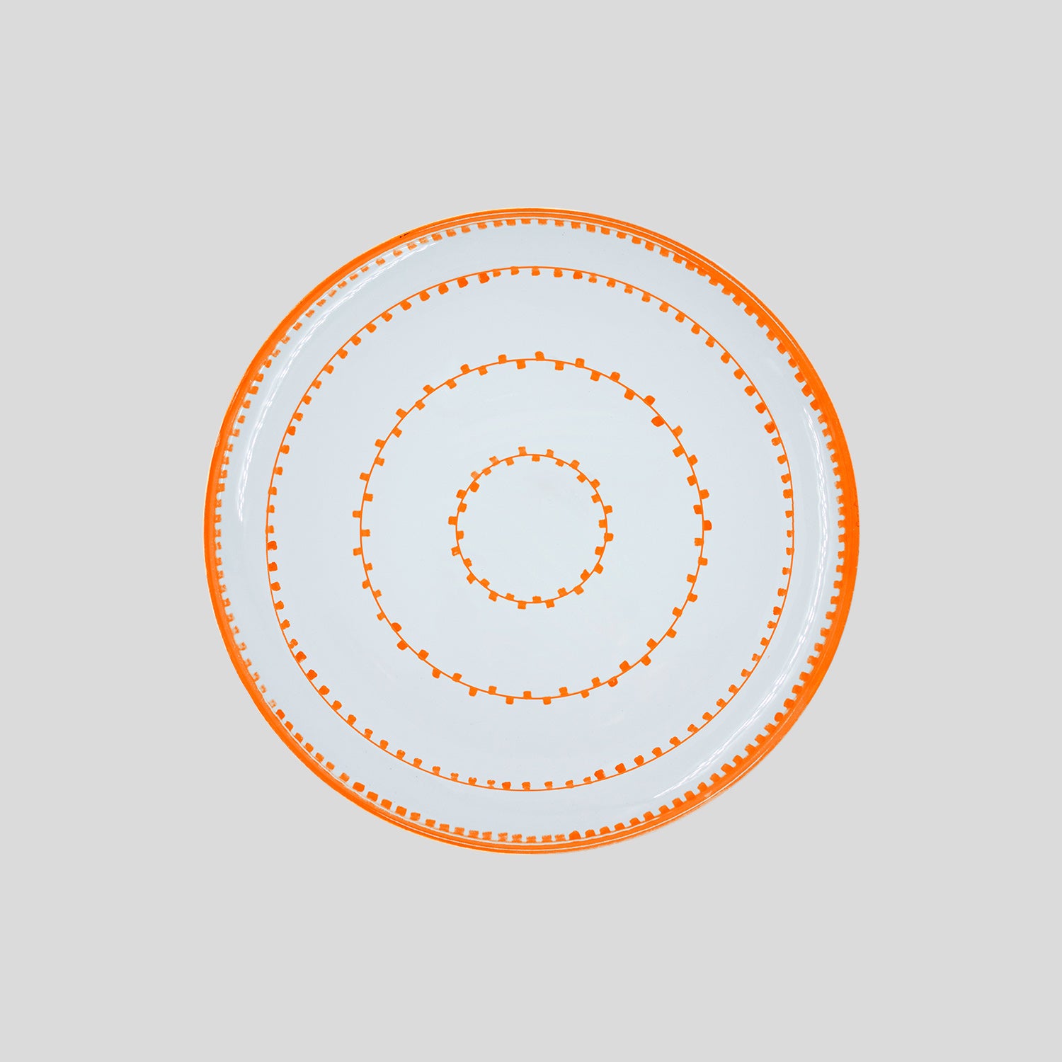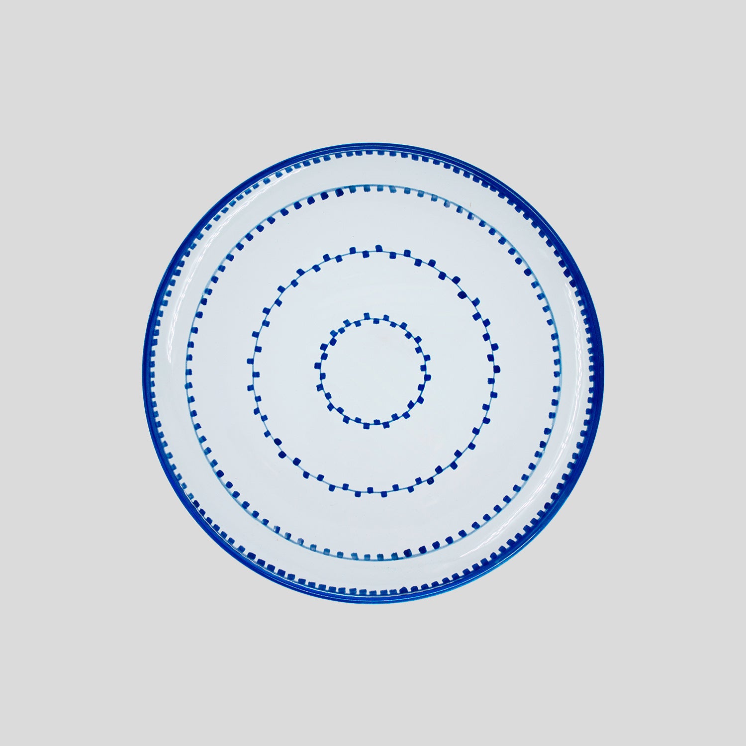 Piatto realizzato a mano da artigiani locali Pugliesi su disegni esclusivi dell’azienda Cibelle. Il design rappresenta le luci che decorano le facciate dei palazzi, le strade e i cortili durante le feste del Paese.