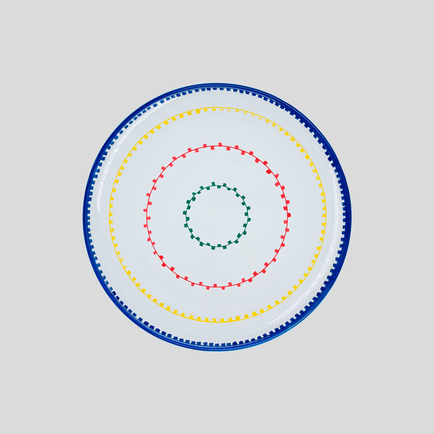 Il piatto è lavabile in lavastoviglie e viene prodotto in pezzi limitati. Vi consigliamo di abbinare questo piatto con la nostra tovaglia Luminaria per creare la vostra tavola originale e colorata.
