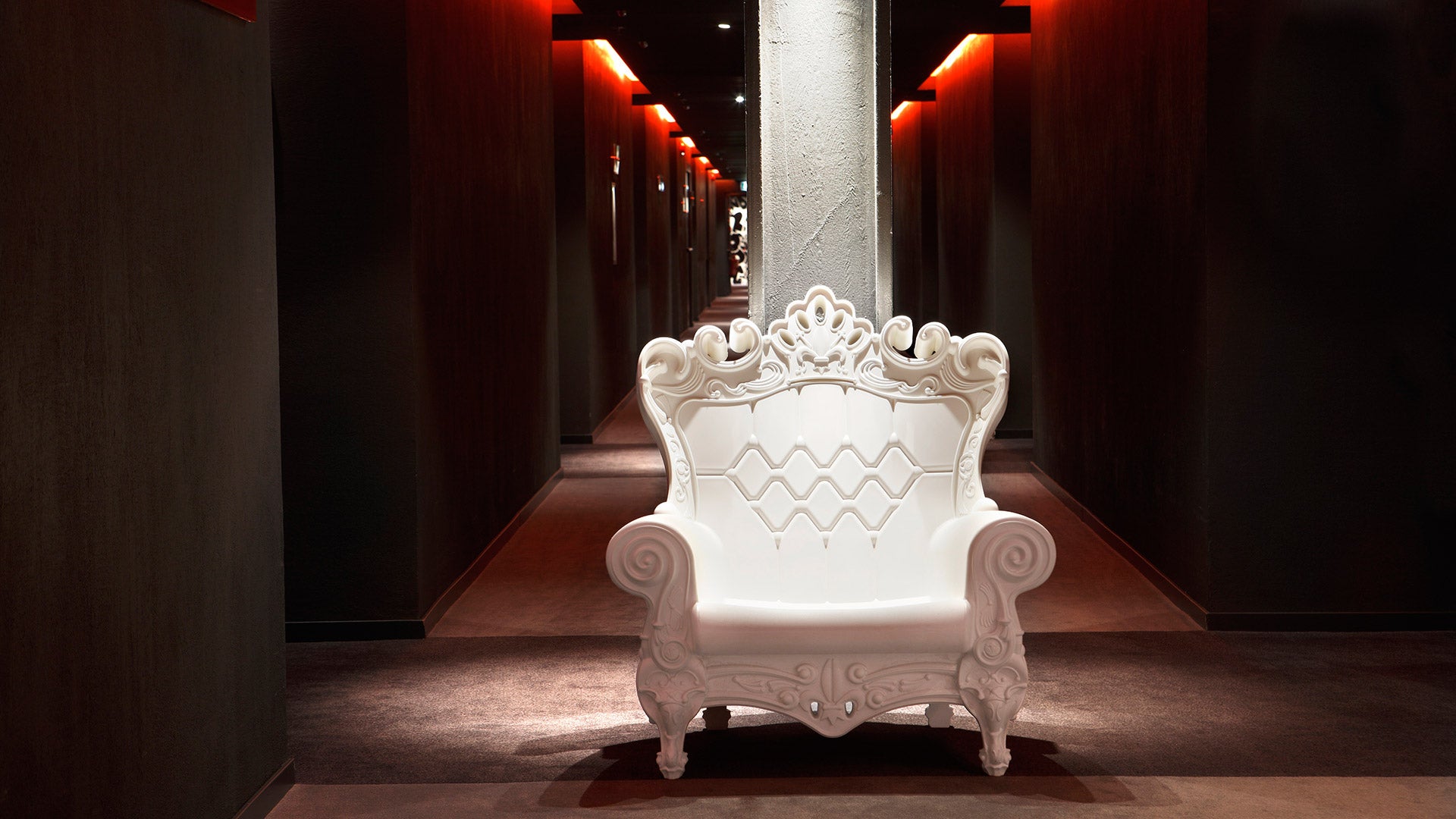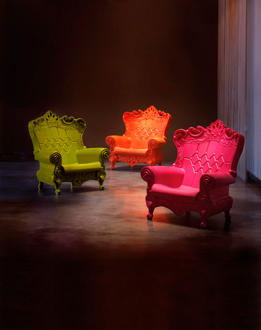 L’inconfondibile Queen Of Love è il primo pezzo e il più amato e conosciuto al pubblico della collezione Design Of Love. Una poltrona dal design unico, capace di attirare l’intera attenzione su di sé e di incoronare chiunque ci si sieda sopra. Con il suo stile ricco di dettagli tipico barocco, ma con tutta la contemporaneità del materiale con cui è realizzata, Queen Of Love è elegante, sprezzante e pop. Per questo è diventata un oggetto del desiderio di contract, privati, ma anche per allestimenti per la televisione, lo sport e per eventi di fama internazionale.