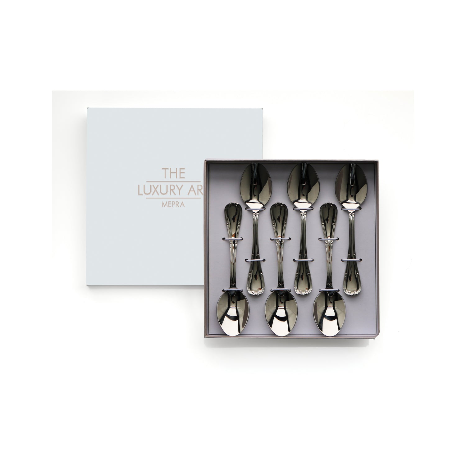 Un regalo dolce e raffinato, la confezione da 6 cucchiaini dolce è pensata per chi desidera un accessorio elegante da usare quotidianamente o per occasioni speciali. Confezionata in modo impeccabile, questa proposta è perfetta come bomboniera o regalo, unendo stile e praticità in un oggetto che impreziosisce ogni momento di convivialità. Un piccolo gesto che lascia un grande segno grazie alla cura del dettaglio e alla qualità dei materiali.