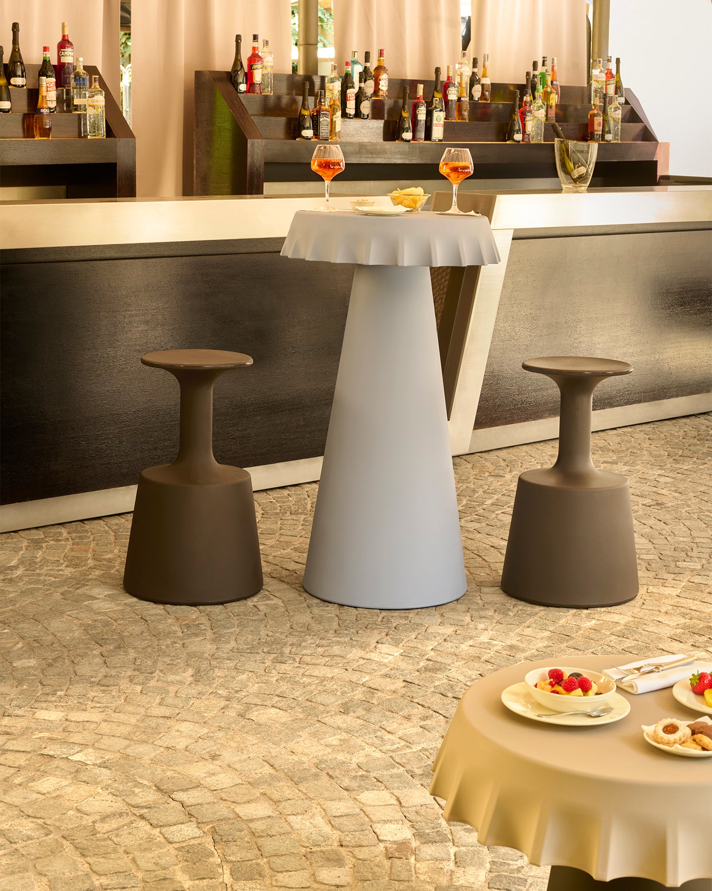 Fizzz è un tavolo il cui piano richiama simpaticamente il tappo di una bottiglia sorretto da una base. Come anche per il tavolino Tea Time, l’incredibile capacità del designer Gianni Arnaudo di costruire prodotti eleganti partendo dalla forma di oggetti di uso comune e lontani dal mondo del design. Fizzz, ideale in spazi indoor e outdoor di contract ed eventi, si adatta agli spazi grazie alla base di diverse altezze e ai tanti colori in cui è disponibile.