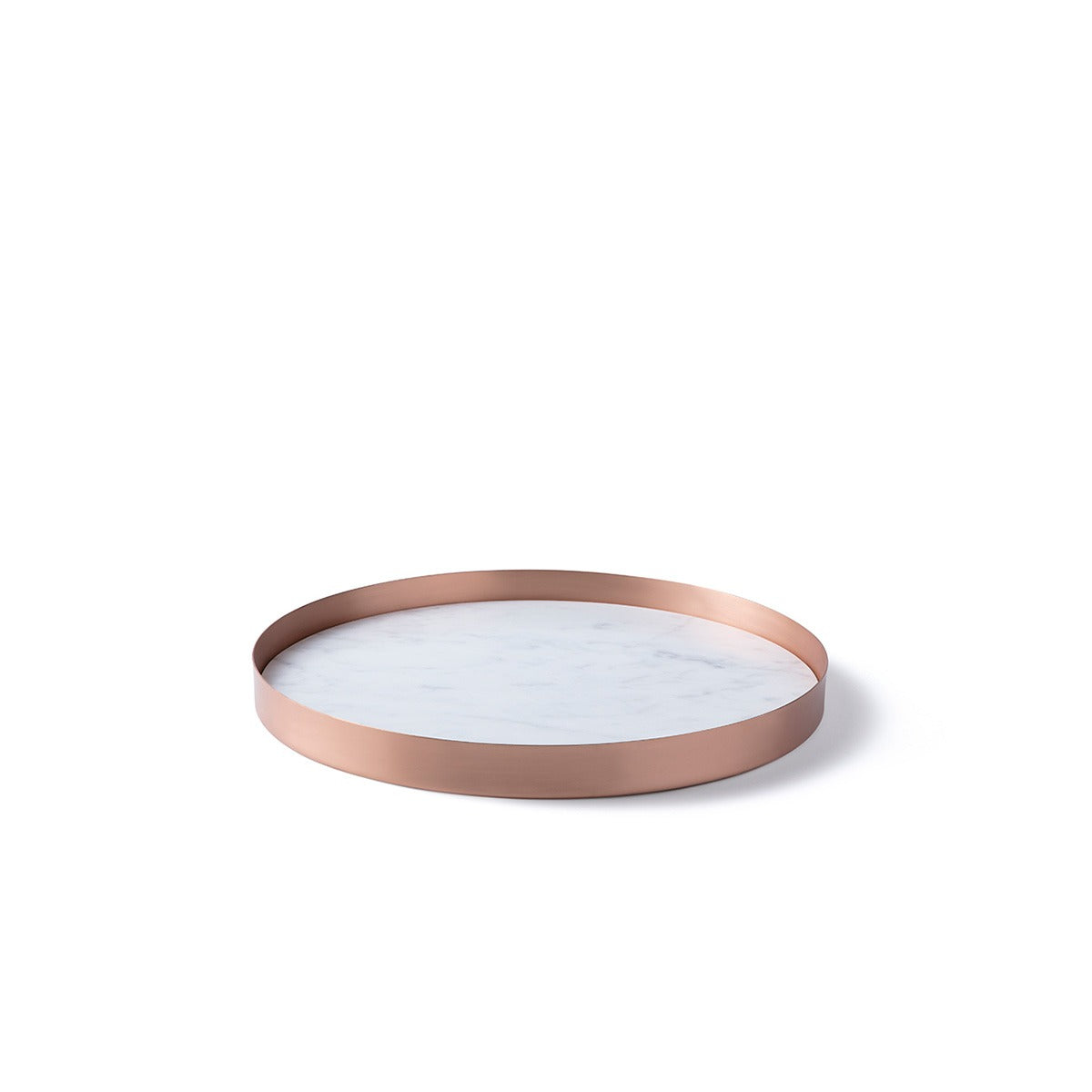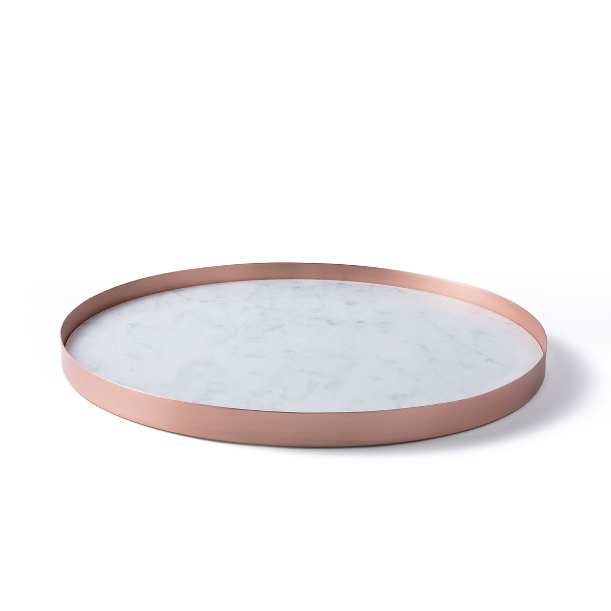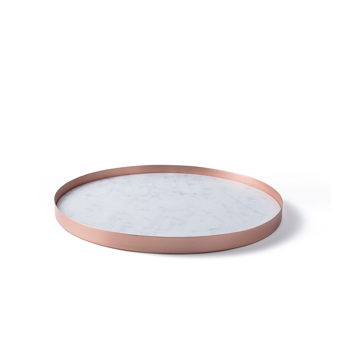 Vassoio in rame satinato disponibile con o senza piano in marmo e realizzato in 3 dimensioni. Prodotto fatto a mano.